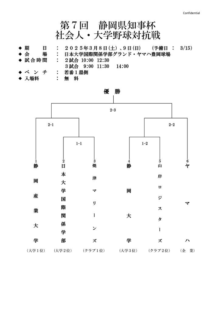 第7回静岡県知事杯社会人・大学野球対抗戦【組合せ表】